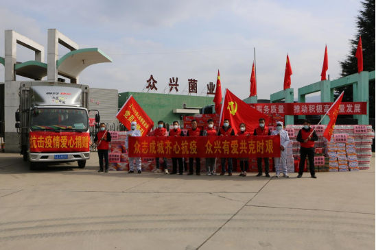 此次疫情爆發(fā)以來(lái),天水社會(huì)各界眾志成城、攜手抗疫,筑起了一道抗擊疫情的長(zhǎng)城。在積極響應(yīng)市委、市政府號(hào)召,切實(shí)做好自身防護(hù)的同時(shí),天水眾興菌業(yè)科技股份有限公司、眾興菌業(yè)黨委主動(dòng)擔(dān)當(dāng)作為,多方采購(gòu)方便面、礦泉水、火腿腸、奶茶、暖貼等價(jià)值3萬(wàn)余元的物資,并組織黨員先鋒隊(duì)快速送到抗疫一線......